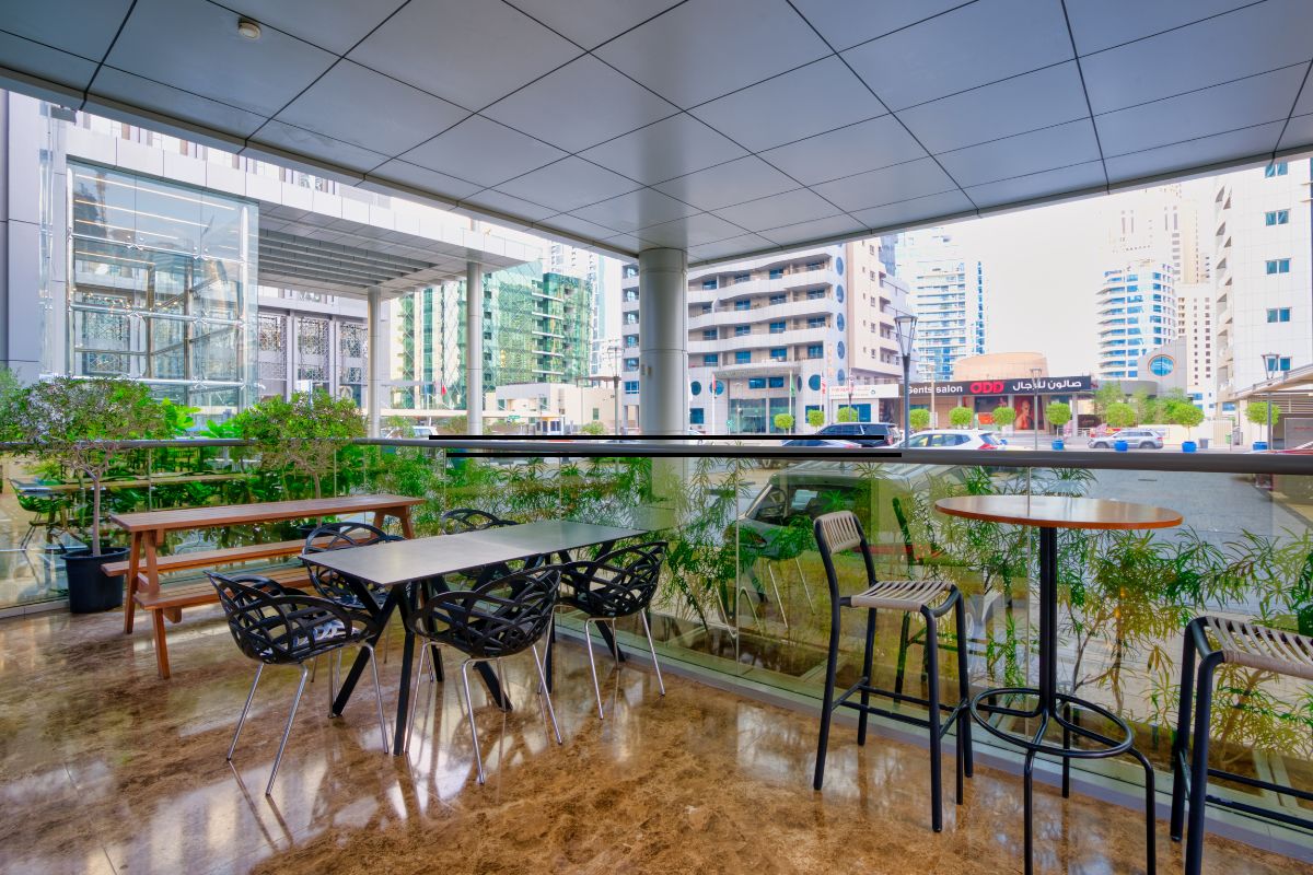 Alloro is located at The First Collection Dubai Marina, offering both indoor and outdoor seating.